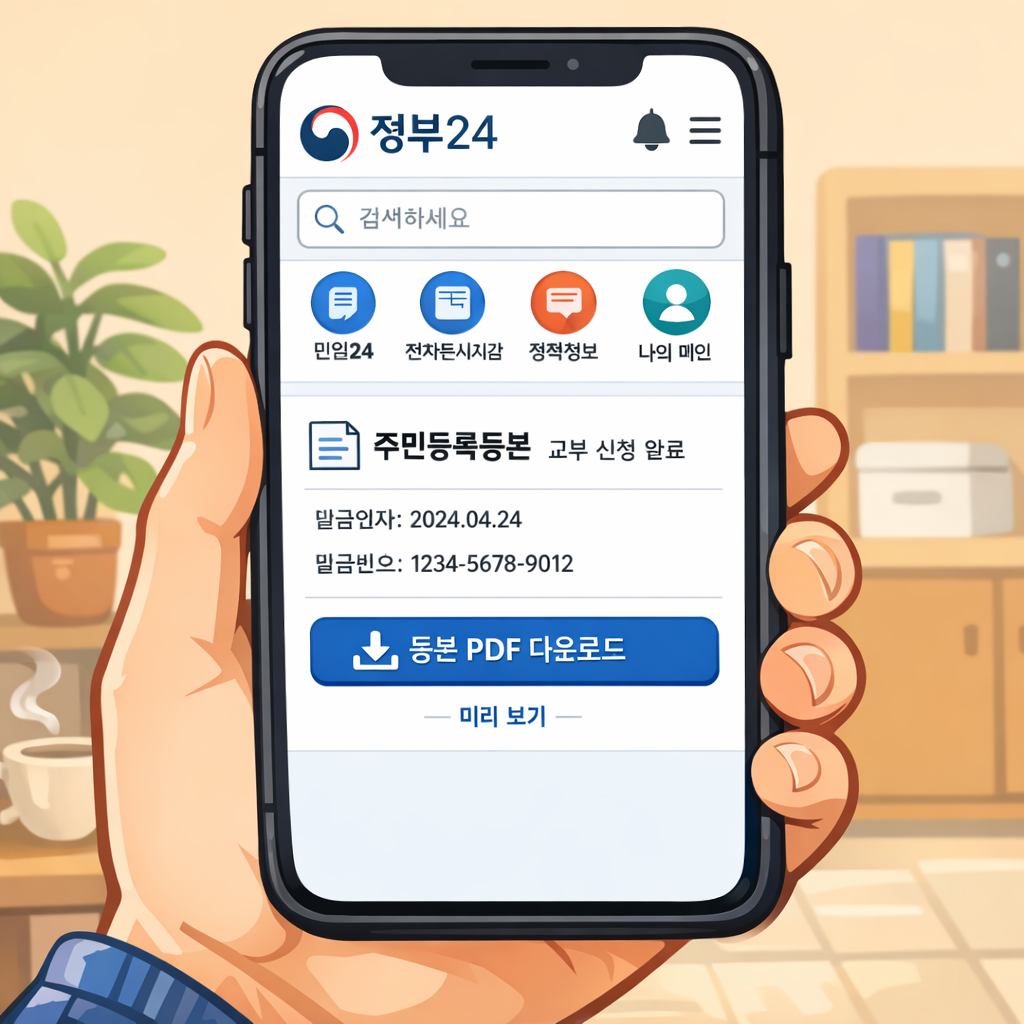 | 5 | 주민등록등본 | 가족 관계 및 실거주 확인용 (정부24에서 발급) |
