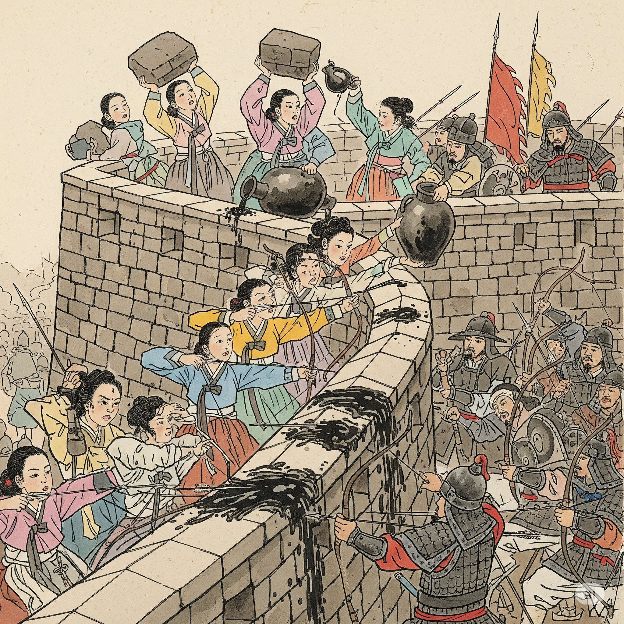 임진왜란 속에서 수많은 남성 의병장이 영웅으로 기록되었습니다. 그러나 동시에 이름조차 남기지 못한 여성 전사들이 존재했습니다. 남원성에서 창을 들고 싸운 부녀자들, 곽재우 의병을 도운 이름 없는 여인들, 왜군의 수탈에 맞서 자결한 기생들까지 — 이들의 삶은 조선이 전란 속에서도 무너지지 않았던 힘의 원천이었습니다.
