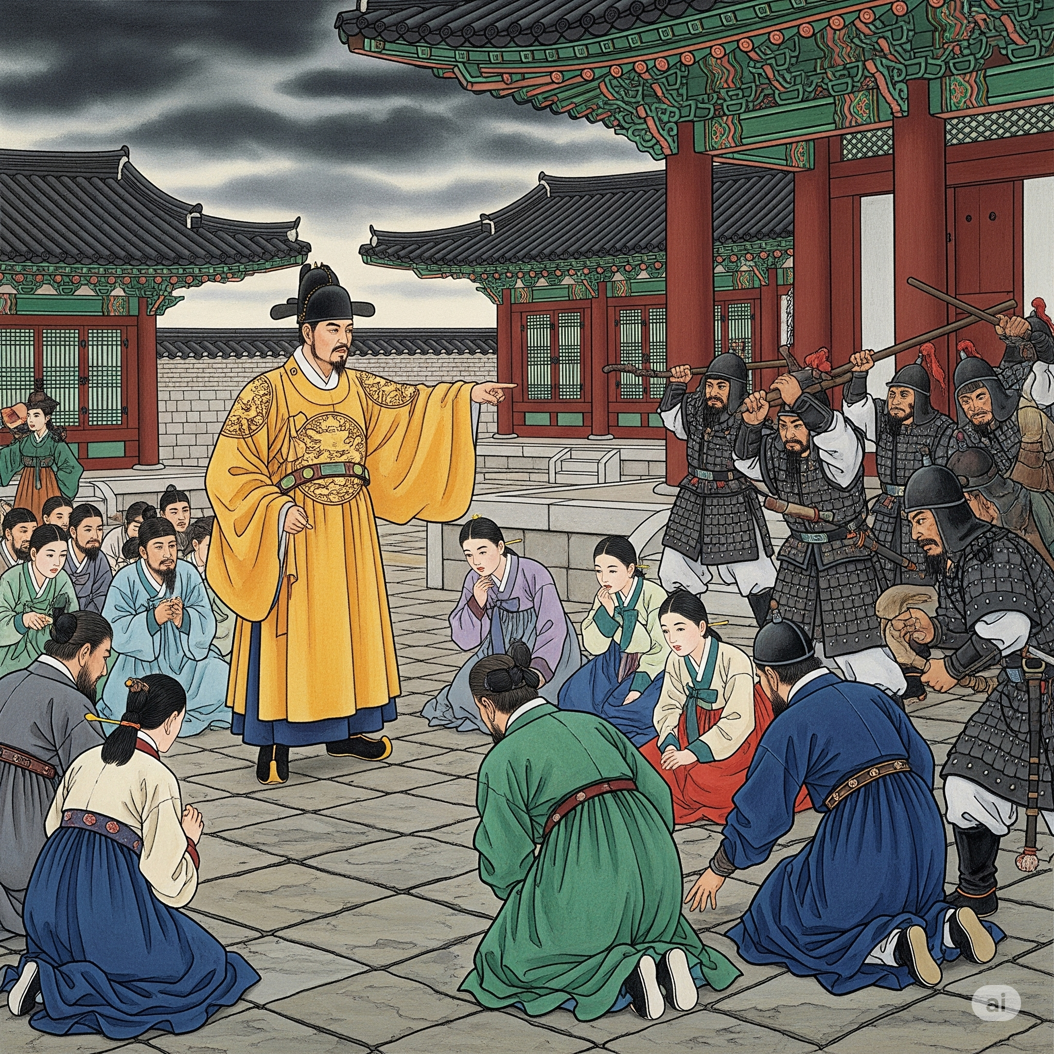 - 일화: 연산군은 궁중 잔치 도중 옛 궁녀들을 끌어내 목숨을 빼앗았다고 합니다. 심지어 자신의 친척까지도 예외가 아니었으며, 피의 복수극은 “궁궐이 통곡으로 가득했다”는 기록을 남겼습니다.